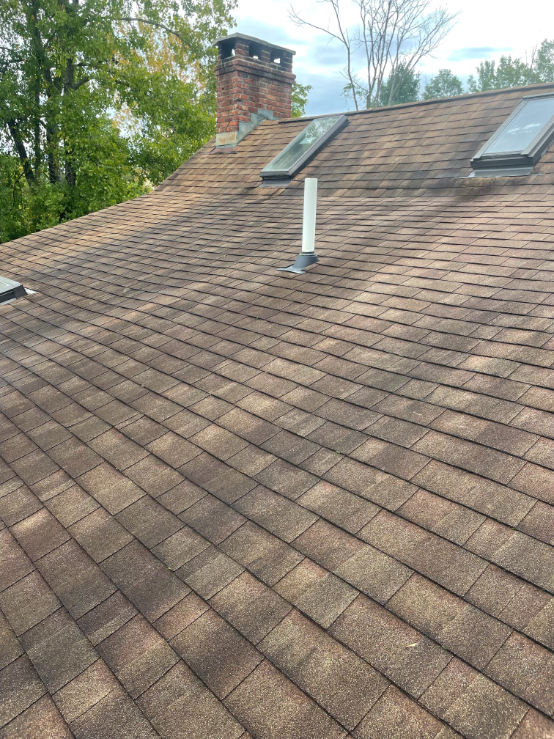 We often get calls about cleaning black streaking on roofs. Using our soft wash roof cleaning technique we protect the integrity of your roof and remove the black streaks with in minutes. These pictures were taken 30 minutes apart.
