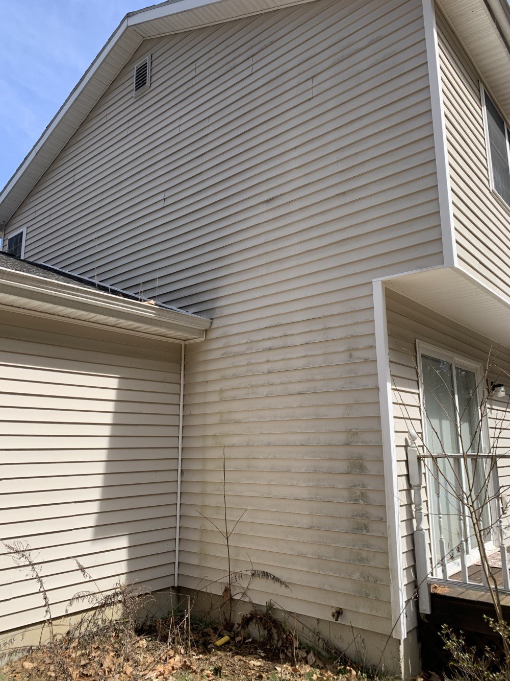 On this project, we washed a home with a heavy algae growth on the front side. There was also typical green growth on the rest of the home that was easily removed with our cleaning process.